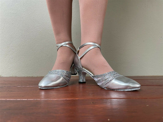 Enclosed X-Strap Ballroom Dance shoes 1.5-2" (Silver)
